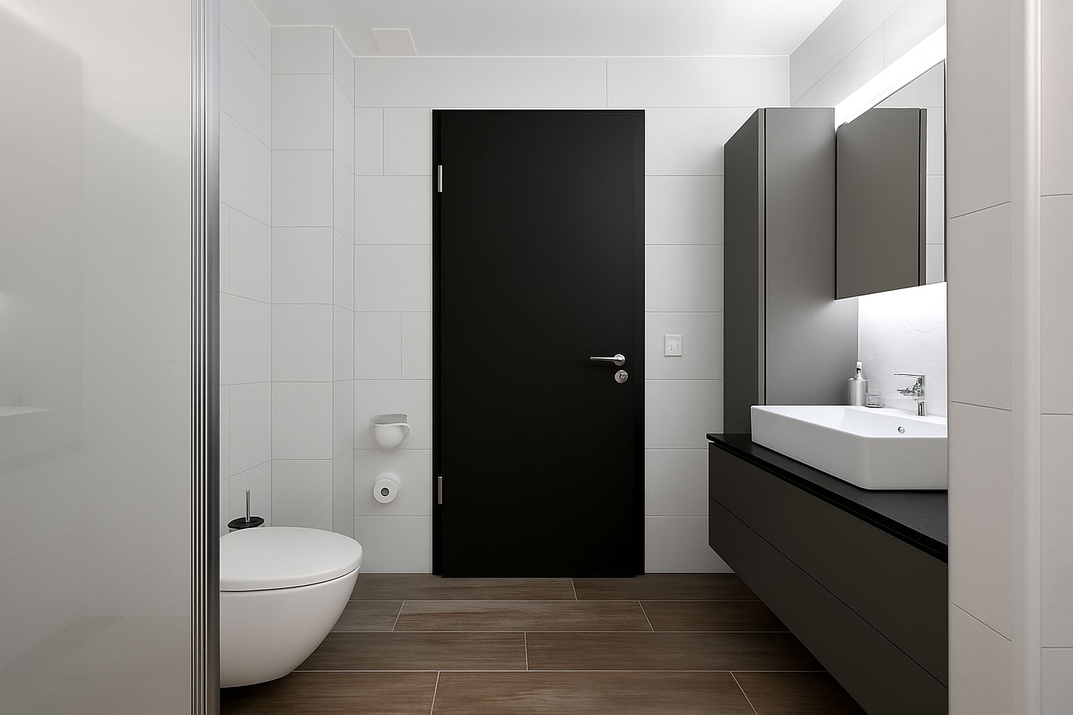- Platten in der Nasszelle: Grau, matt